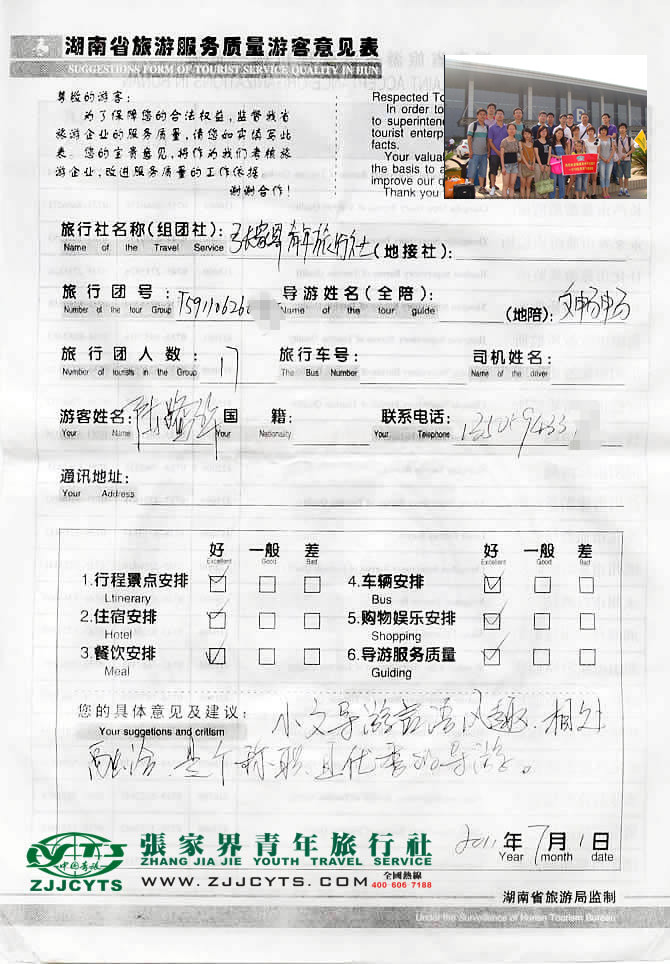 您的位置:首頁 -> 質量反饋 -> 接待湖北黃石一行18位游客的質量反饋
